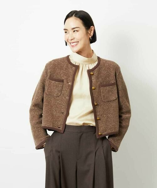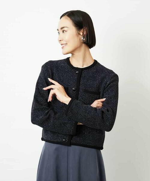 モール糸にラメと細かなスパンコールを散りばめた、華やぎのあるニットジャケット。コンパクトなサイズ感で軽やかに羽織れ、スタイリングにほどよい存在感を添えてくれます。 40サイズは限定店舗展開です。
