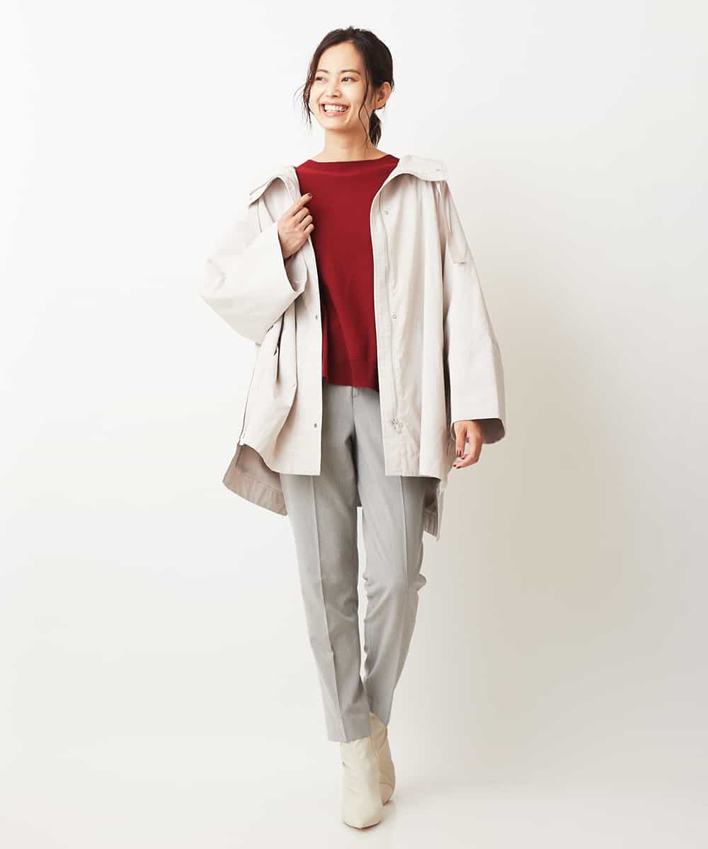トレンドのフレアーパンツとの相性も抜群です。一枚着としてももちろん、アウターのインナーとしてもおすすめ。
