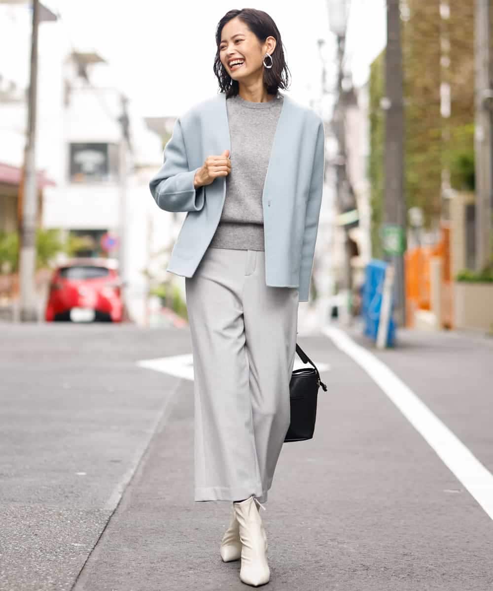 肩にパールボタンをあしらったカシミヤプルオーバー。小さめの衿あきで上品な印象です。ウィンターパステルカラーでアクセントカラーにおすすめです。40サイズは限定店舗展開です。