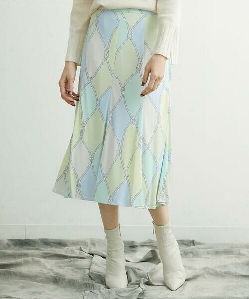 ブランドオリジナルプリントのミディ丈スカート。シンプルなデザインのプリントスカートは着こなしの幅を広げたい時に便利なアイテム。しわになりにくいのも嬉しいポイント。40サイズは店舗限定展開です。