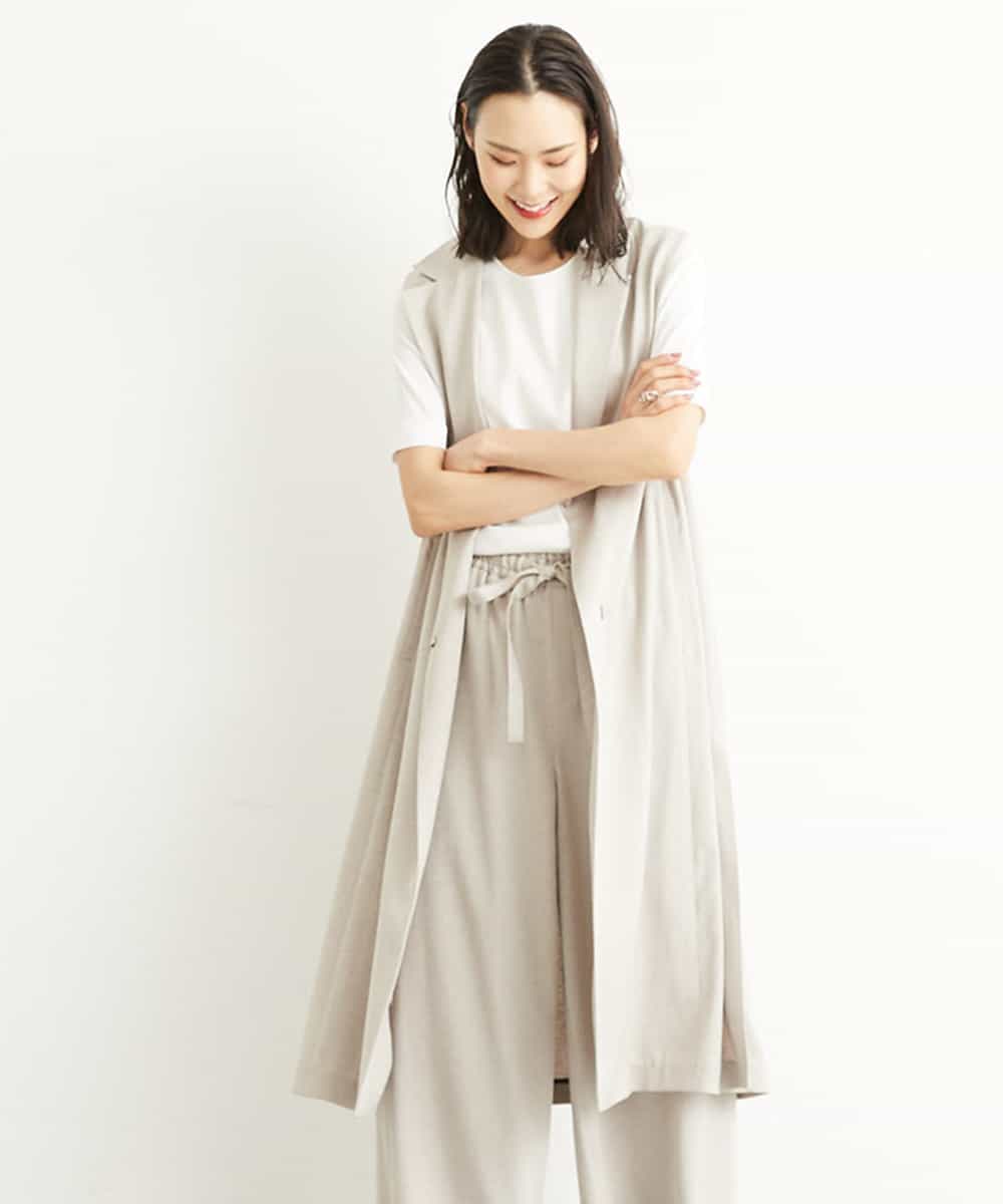 MICHEL KLEIN / ミッシェルクラン ベスト | リネンライクロングジレ(セットアップ対応)(アイボリー(80))