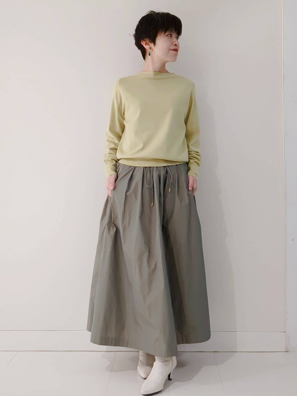 大人気ニット[FMFGS36160]に新色が追加しました。人気のリブ横使いのボートネックモデルを、清涼感のある素材にチェンジして、半袖に仕立てました。夏場も、ボトムを選ばず活躍してくれる一枚です。型を崩れにくくするために2023年から素材をチェンジしてアップデートしました。カーキはWEBだけの限定カラーです。40サイズは限定店舗展開です。36サイズはEC限定展開です。