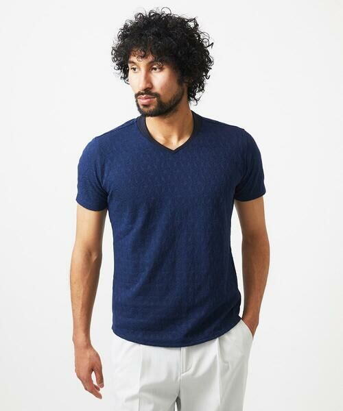 MICHEL KLEIN HOMME / ミッシェルクランオム カットソー | 《日本製》リンクスVネック半袖カットソー(ホワイト)