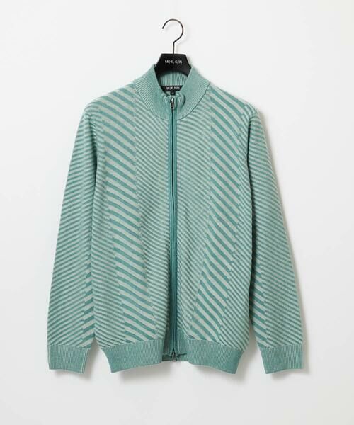 ・新たな試みとして、斜めに走るストライプ調の編地を採用し、さりげないアクセントが、装いに奥行きを与えます。