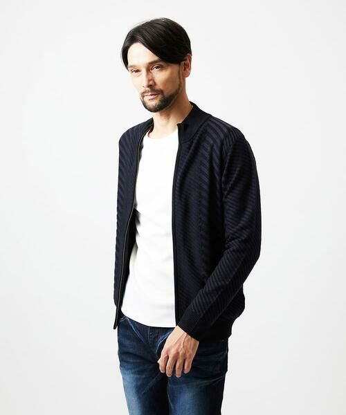 ・フロントにはダブルジップを採用し、着こなしの幅が広がるブルゾン型ニット。