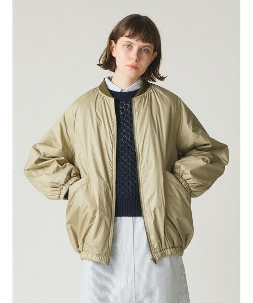 MidiUmiのリピート商品としてアイボリーを追加して再入荷した中綿ブルゾンです。薄い中綿を使用したボリューム感のあるライトアウターです。袖にボリューム感があります。袖口と裾はゴム使用。ヒップの隠れる着やすい着丈です。スカートとのコーディネートも素敵で女性らしいカジュアルな着こなしなど、色々なボトムと相性よくコーディネートしていただけます。中綿を使用していることでボリュームがありながら大変軽い1枚。手がすっぽりと入る大きなポケットもポイントです。
