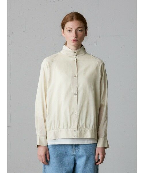 薄手の80ローンを使用したシアースウィングトップシャツ。日差しの強い時期の日よけにもオススメ。中にタートルネックを着用いただき寒くなる時期にも重宝します。春夏で展開した 1-739798/スイングトップシャツ型をフロントボタンにするなどアレンジを行いデザイン変更しています。裾のボタンを留めることでブラウジングしたようなトップスっぽいシルエットにも。季節の変わり目にサラッと羽織っていただける1枚です。