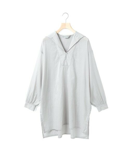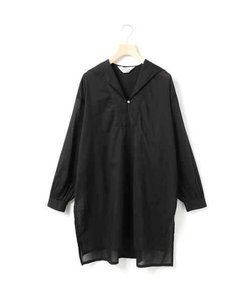 薄手の80ローンを使用したシースルーセーラーカラーチュニックです。8〜9月の日差しの強い時期の日よけにもオススメ。中にタートルネックを着用いただき寒くなる時期にも素敵に着こなしていただける1枚です。ヴィンテージのスモッグのような雰囲気が印象的。後ろはセーラー、サイドは深めのスリットが入りボトムとの重ね着もしやすいデザインです。優しい色合いを取り入れているので季節によって着こなしを楽しんでいただけるチュニックです。