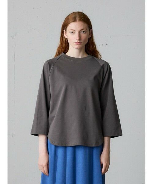 ハリのある度詰めの天竺素材を使用したベースボールTシャツです。程よく厚みがあり透けにくさのある素材が特徴。古着から着想を得たベースボールTシャツを少しコンパクトに仕上げた1枚。コーマ糸を使用したきれいな目づらの生地を使用し、大人の女性らしい雰囲気に落としこみました。シンプルに着こなせる着回しアイテムで、晩夏から着用しやすく、インナー対応もしていただけるので長く愛用していただけます。