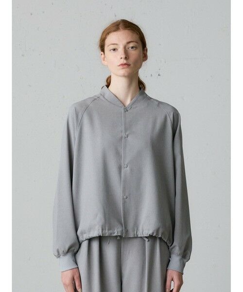 リサイクルポリエステル100%使用したシャツジャケットです。梳毛ライクで落ち感のある生地が特徴。洗ってもシワになりにくいのがポイント(手洗い可能)。ブルゾンのような仕上げのシャツで同色のドットボタンを使い、カジュアルすぎずきれいめな雰囲気に仕上げました。袖口は風通しのないリブ使いなのでフィットしています。裾は絞り紐が付いているので絞ってシルエットを変化していただけるデザインです。季節の変わり目に活躍できる1枚です。