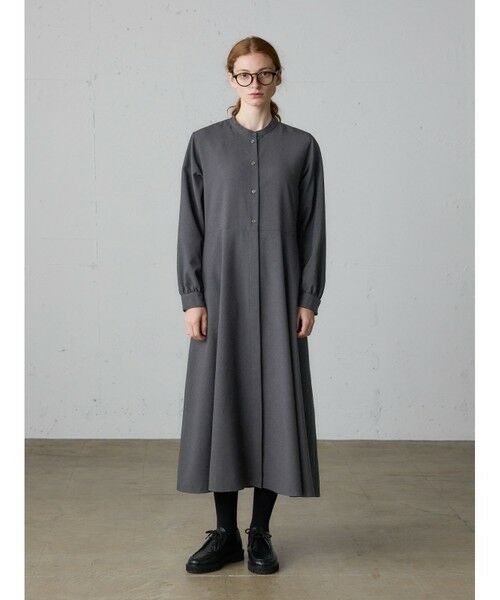 リサイクルポリエステルを100%使用したウエスト切り替えロングワンピースです。梳毛ライクで落ち感のある生地が特徴。洗ってもシワになりにくいのがポイント。上見頃は肩周りをコンパクトめに、スカート部分はボリュームをたっぷり使用したバランスのとれたデザインです。ベーシックな3色展開に絞っており、落着きがあり上品でクラシカルな雰囲気を提案した1枚です。