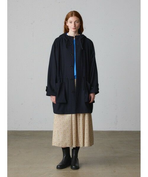薄手のウールポリエステルフラノを使用したウールフード付きコートです。1枚仕立てにし、軽く仕上げたコートです。ワーク感のあるモッズコートをあえてフラノに置き換え、きれいめに仕立てました。大きなポケットや小ぶりなフード付き。小柄な方にも着用しやすい丈とサイズ感がポイント。カジュアルな着こなしやトラッドな着こなしにも幅広くコーディネートしていただけます。ネイビーとグレーのベーシックカラーで展開しており、どちらも長く愛用できるコートです。同シリーズ3-779945/ダッフルコートも展開。
