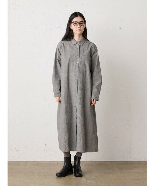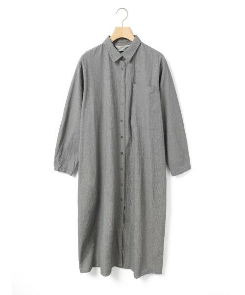 ハリのあるタイプライター素材のシャツシリーズ、ビッグポケットシャツワンピースです。パッと目に入る大きなポケットがポイント。羽織物としても素敵な1枚で、微Aラインのシルエットとあえて小さくしたカフスが女性らしい雰囲気に。ワッシャー加工を施しておりシャツに風合いがある魅力的な1枚です。優しい色合いの色展開で、印象の異なるシャツに仕上がっています。シンプルで着回しがきき重ね着アイテムとして重宝します。同シリーズ4-730034/ビッグポケットシャツも展開。
