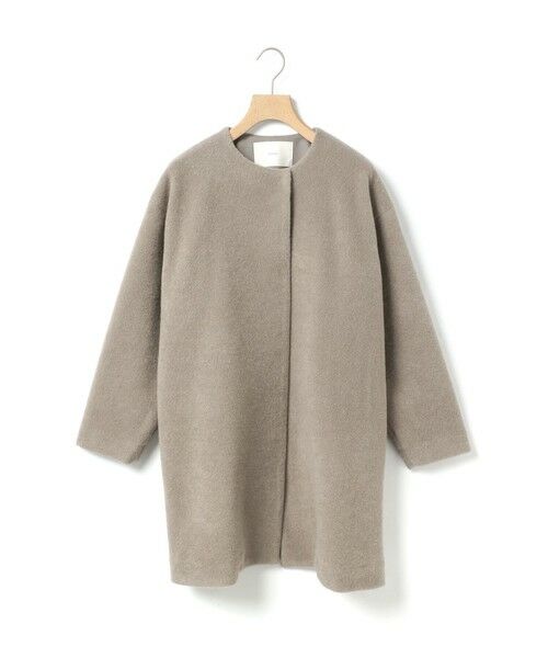 圧縮ウールのような見ためで暖かさと軽さのある素材を使用したブークレノーカラーコート。柔らかくふんわりとした質感が特徴で手触りの良い表面感の膨らみが魅力的。フロントのデザインは内側にスナップボタンが付いた仕様です。膝丈の大きすぎないサイズ感がポイント。優しい色合いの女性らしい雰囲気を印象つけるコートです。同シリーズ4-770022/ブークレロングベストも展開。
