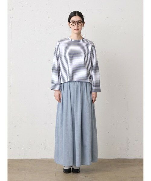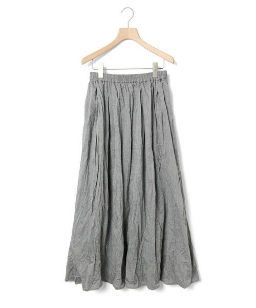 昨年人気アイテムとなったシャンブレーギャザースカートです。シャンブレー生地を使用したロング丈の軽やかなデザインに絞りを効かせワッシャー加工を施しました。シワの雰囲気がより魅力的にデザインされた爽やかな1枚です。ウエストもゴム仕様なのでリラックス感があり穿きやすいデザインです。透け感を気にすることなく着用していただけます。シンプルにTシャツやシャツのみでベーシックカジュアルを演出していただけます。お洗濯後は敢えて捩じって収納していただくとワッシャー感がでるのでお勧めです。