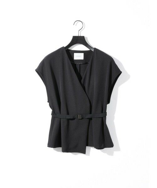 縦ラインが目立つ表情のある麻調素材を使用したノーカラージレです。スッキリとした首元やボタンレスでベルト付の清楚なベストアイテムとなっています。ドアバックルのゴムベルト付でウエストマークのできる女性らしいデザインが特徴。ベルト無しで軽く羽織っていただいても良く、ベルト使いによって雰囲気を変えていただけます。野暮ったくならずリラックス感を加えるフロントのアシンメトリーラインもポイントです。きちんと感を演出した着こなしにお勧めで、同シリーズ3-162188/ワイドコクーンパンツとセットアップが可能。秋の装いをかっこよく演出します。