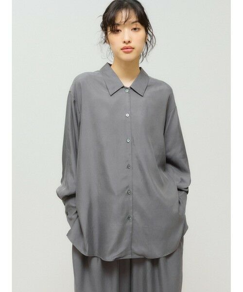全体的にリラックス感を演出したリラックスキュプラシャツです。オーバーサイズで、襟の形やカフスの長さのある縦長のかっこいいデザインを表現。長めのカフスは折り返してもOK。キュプラながらポリエステル込みでマシーンウォッシャブル可能な接触冷感のある素材を使用。秋っぽいパウダーリッチがポイント。同シリーズの3-162185/リラックスキュプラパンツとセットアップも素敵です。フロントオープンにしてラフに着こなせる1枚です。