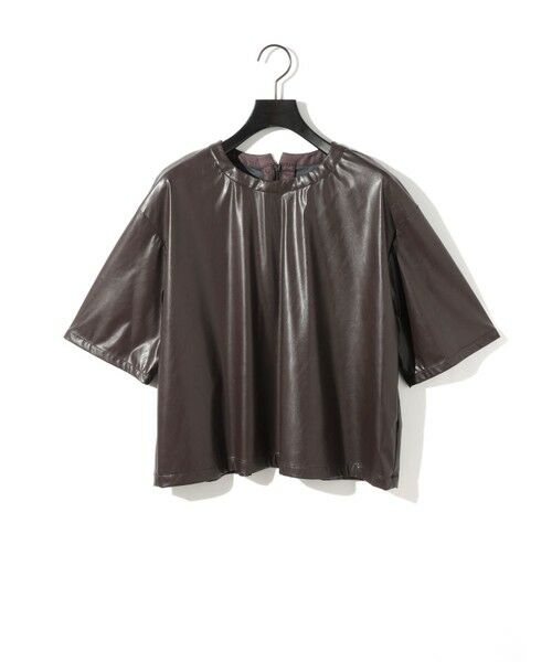 リアルレザーに近い艶のあるフェイクレザーで仕上げたシンセティックレザートップスです。ジャージ素材をベースにしているため風合いがソフトで薄さとストレッチ性があり着心地が良いのが特徴。Tシャツ感覚で着用でき、レイヤードでも使いやすいサイズ感です。ベストとしてもコーディネート可能。後ろ襟ぐりはすっきりとしたコンシールファスナー開きのデザインです。同シリーズ3-162191/シンセティックレザーショートパンツとセットアップも可能です。