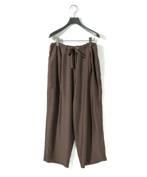 滑らかで落ち感のある素材が動くたびに美しく揺れ、リラックス感の中にも上品さを感じられます。パウダリータッチで薄手ながらも、ほんのりとしたぬくもりを感じる質感が秋冬らしい一本。軽やかながらも落ち感があり、シーズンムードをさりげなく取り入れられます。薄手なので暑い時期から真冬以外でかつやくします。紐で調節できるイージーウエスト仕様で、ウエスト周りに寄せたギャザーが立体的なシルエットを演出。リラックス感の中にも上品さが漂い、シンプルなトップスを合わせるだけでこなれた印象に仕上がります。