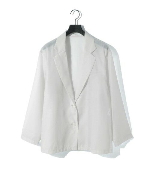 オーガンジーの上品で繊細な生地で仕上げたシアーシャツジャケットです。ハリ・光沢感がありシワになりにくいのが特徴。具調ボタン仕様。透け感があり晩夏から秋口に羽織っていただきやすいシャツジャケットを表現。サイドスリットが入っているので動きやすく、オーガンジーの軽さをより演出したデザインです。合わせるコーディネートによってかっこよくも女性らしくもなる雰囲気のある1枚です。