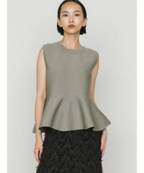 生地のしっかり感とストレッチのきいたペプラムベストです。季節の変わり目に重宝するポリエステルニット生地を使用した人気のシリーズで、ハリがありシンプルで合わせやすいアイテムとなっています。クルーネックのベーシックなデザインから裾フレアが印象的な女性らしいベストです。甘くありすぎないところもポイント。お洗濯もしやすく着回しアイテムとしてお勧めの1枚。同シリーズ4-122147/ショートワイドプルオーバーと重ね着しても素敵です。