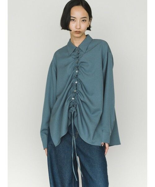 春夏で好調だったドローストリングシャツが秋冬でも新登場したドローストリングシャツです。パウダリータッチで防シワ加工、冷感接触生地が特徴。春夏より少しタイト目にシルエット変更しています。ユニセックスで着用可能。清楚で上品な着こなしにお勧めで、ドロストのアレンジを楽しんでいただけるアイテムになっています。片方だけあげてもOK、両方上げてもOK。ボトムとのバランスを考えてコーディネートを印象的にできる1枚です。