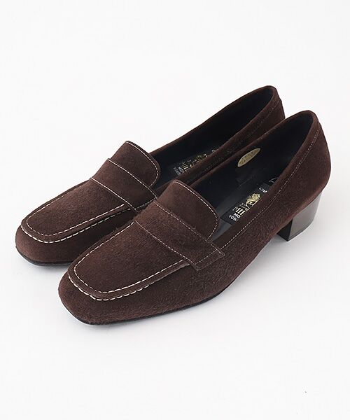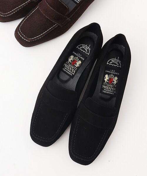 ローファ-調のシンプルなカジュアルパンプス。撥水牛スエードを使用しており、急な雨にも対応できます。