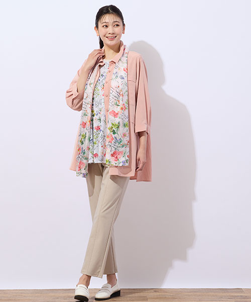 【大きいサイズ/L~3Lサイズ】きれいなカラーシャツと柄ストールで楽しむ春コーデ