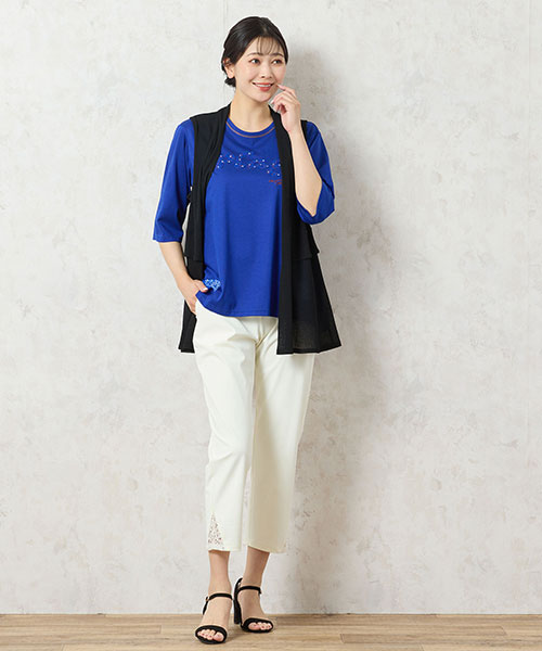 左右の裾にはレースを接ぎ合せた涼やかなディティールにも注目です。