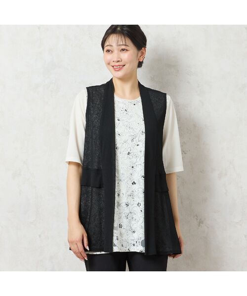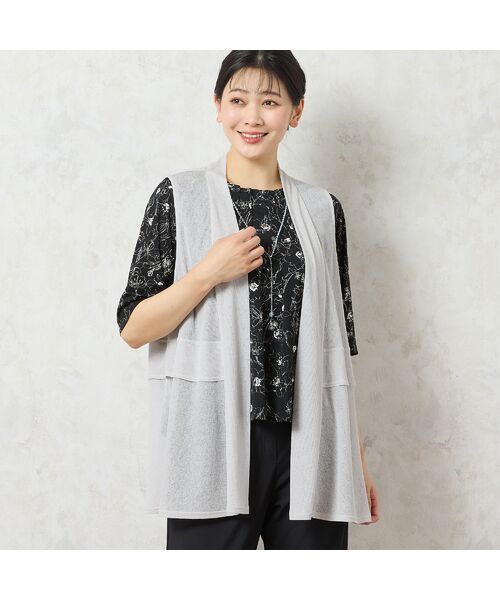 エレガントな花柄インナーを合わせたり、ブラウスとのレイヤードスタイルをお楽しみいただけます。