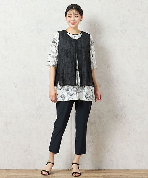 【大きいサイズ】シアーベストでいつものTシャツコーデに鮮度をプラス!モノトーンでまとめればスッキリ着こなせます。