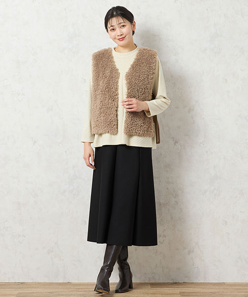 【大きいサイズ】ふわふわのフェイクファーが可愛いベストは秋のレイヤードスタイルに欠かせないアイテムです。