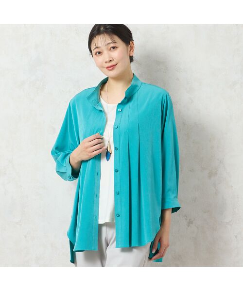パンツスタイルを品良く着こなせる快適素材のシャツです。