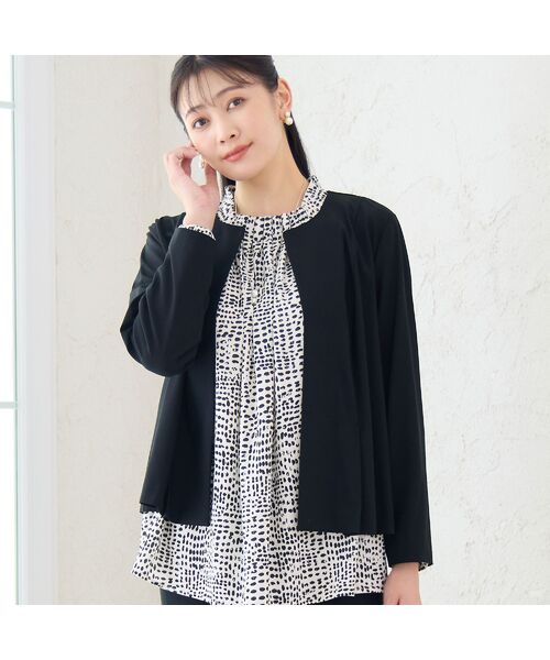 【洗える・セットアップ可能・3L/4Lサイズあり】漆黒ノーカラージャケット