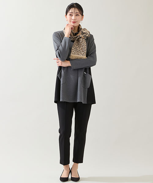 【大きいサイズ】暖か素材を使ったチュニック&パンツなら寒い日のお出かけも安心です。ヒョウ柄のマフラーをアクセントにすればお洒落感もアップ!