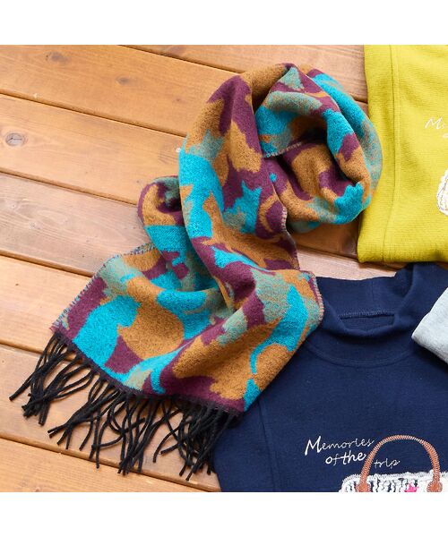 フランス製らしいカラフルな色使いが印象的なマフラー。