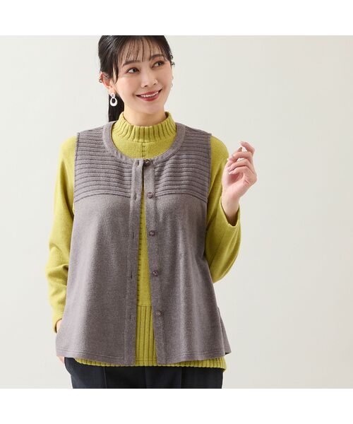 カットソーやチュニック、シャツやワンピースなど様々なトップスとの重ね着をお楽しみいただけます。