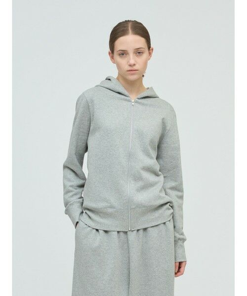 ライトな裏起毛を使用した裏起毛ジップパーカーです。コンパクトなサイズ感を表現したベーシックカジュアルなアイテムです。冬はアウターからフードを見せてオシャレしていただくイメージです。シンプルなので色々なアイテムにも気軽に羽織っていただけ、秋口から春先まで長く季節の移り変わりに重宝します。同シリーズ3-260073/スウェットワイドイージーパンツ裏起毛ジップパーカーとのセットアップが可能です。