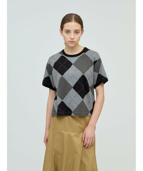mizuiro ind アーガイルプリントTシャツ
