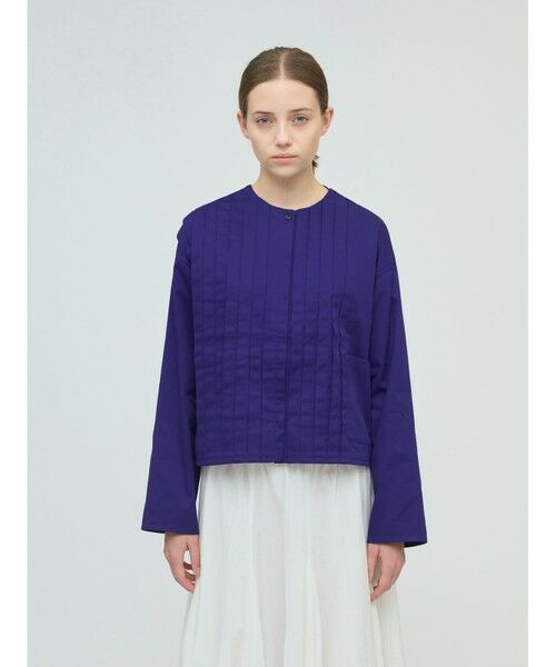 ハリとコシのある生地を使用したクルーネックピンタックシャツです。ワークなスタイルとピンタックをMIXしたデザインが印象的。シャツジャケットとしても使用可能。フロントに施したピンタックはアシンメトリーになっており左ポケットが付いています。フロントボタンは比翼仕立てでピンタックを邪魔しないデザインもポイントです。同シリーズ3-250070/クルーネックピンタックワンピースも展開中。