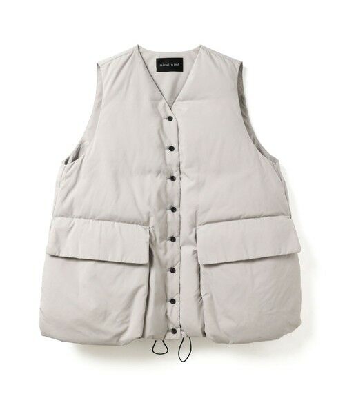 大きなポケットが特徴のダウンベストです。その下にはフロントポケットとは別にサイドポケットもあり拘りのデザインに。Vネックからフロントボタン使用になっており、裾にかけボリューム感のデザインを表現しました。裾にはドロストコードが付いており絞ることで、立体的なシルエットを演出していただけます。スポーティなデザインでアクティブに動きやすいのもポイント。インナーの重ね着がしやすいのでコーディネートの調整もしやすい1枚です。
