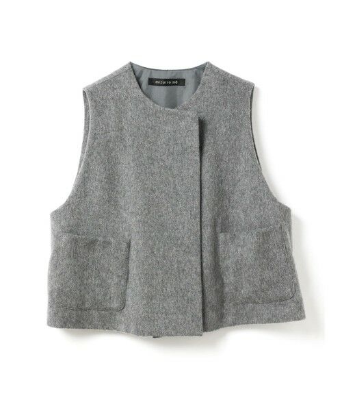 コートライクなベストを表現したポケット付クルーネックベストです。軽いウールのメルトン素材を使用。保温性があり、コーディネートのポイントになってくれる合わせやすい1枚となっています。ショート丈でフロントボタンは使わずすっきりとしたデザインでポケットがアクセントになっています。裏地付き。アームが広く身幅にも余裕があるので重ね着のしやすいサイズ感です。