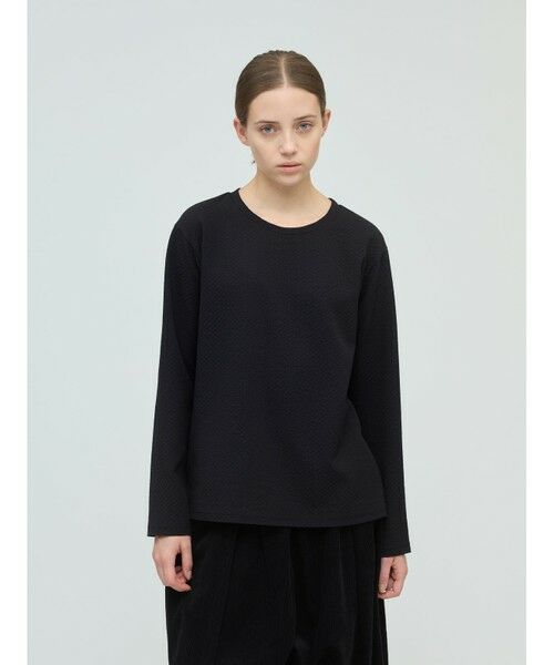 カット素材と布帛の良さを組み合わせたジャカードクルーネックプルオーバーです。布帛のシャツをカットソーの縫製で仕上げており、Tシャツ見えのする上品なブラウスを表現しました。サラッとした素材感で着心地の良さを体感していただけます。クルーネックのシンプルなデザインでベーシックカラーで揃えた着まわしのしやすいアイテムとなっています。同シリーズ3-260076/ジャカードイージーパンツとセットアップもお勧め。セットアップにすることでツナギを着用しているような着こなしを演出します。
