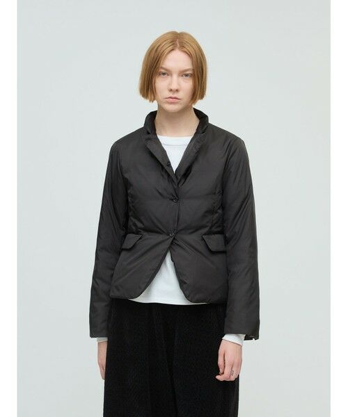 テーラージャケットをダウン仕立てでデザインしたダウンテーラードジャケットです。コンパクト目なジャストサイズで仕上げています。保温性が高く軽さのあるアウターで、寒い時期に大変重宝します。首は襟を立てても素敵です。フロントボタン仕様なのでテーラードジャケットのきちんと感を表現しています。合わせやすく温かい1枚です。