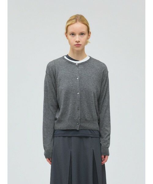 mizuiro indの定番アイテムでもあるベーシックなデザインと気軽に着用できるクルーネックショートカーディガンが今季も入荷しました。保温効果の高いウール混素材でデザインしたニットアイテムです。コンパクトですっきりとしたサイズ感が特徴。気温の変化していく時期に気軽に対応できる1枚で、着回しアイテムとして重宝します。ダークブルーを差し色にベーシックなカラー展開となっています。手洗い可能です。