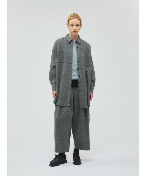 ストレッチのきいた微起毛素材を使用したタックワイドパンツです。温かみがありリラックス感のあるアイテムで、腰下位置からタックを施した動きのあるデザインを表現。ウエストはゴム使用。若干の丸みのあるシルエットは少し短めな丈感で足元のオシャレも楽しんでいただける1枚。更に上下セットアップで着用していただける4-250046/スタンドカラーシャツワンピース や4-230063/ポケット付きワイドシャツも展開。様々な着こなしに万能に使えるボトムアイテムです。