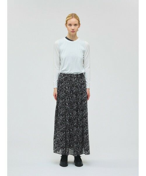 肌触りの良い軽やかなジョーゼット生地を使用したフラワープリントロングスカートです。ブラックのみの1色展開でシックな柄プリントシリーズとしてご提案。ロング丈の広がりのすくないシルエットを表現しました。透け感があるのでペチコート付き。安心して着用していただけます。ウエストはリラックス感のあるゴム使用。同シリーズの4-230064/フラワープリントワイドプルオーバーとセットアップでの着用もおすすめ。4-250047/フラワープリントシャツワンピースも合わせた3型でシリーズ展開しています。Pointシルエット:スタンダードデザイン:花柄ウエスト:ゴムありDetail裏地:あり透け感:あり伸縮性:なし光沢感:なしポケット:なし※商品画像は、光の当たり具合やパソコンなどの閲覧環境により、実際の色味と異なって見える場合がございます。予めご了承ください。※商品の色味の目安は、商品単体の画像をご参照ください。こちらの商品 は mizuiro ind / MARcourt にてお取り扱いしております。店舗在庫等については直接店舗にお問い合わせください。