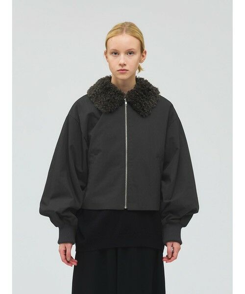 温かなボア襟が魅力のボアカラーショートジャケットです。後ろ裾にタックを施した立体的なシルエットが特徴的。袖は風通しのないしっかりとしたリブ使いで、ゆったりとした袖丈は中にニットや厚手のトレーナーを着用しても窮屈な感じはなく着やすいサイズ感となっています。ヒップ上のショート丈なので、ボリュームのあるボトムもバランスよく着こなせます。ボアは取り外しはできません。温かなボアがしっかりと首元を包んでくれるのでマフラー要らずな1枚です。