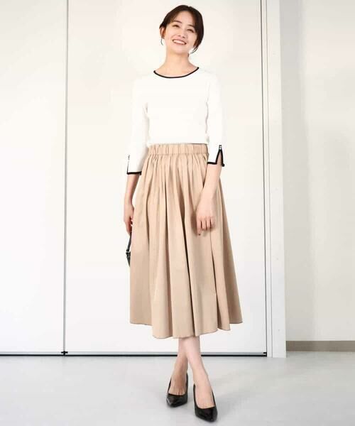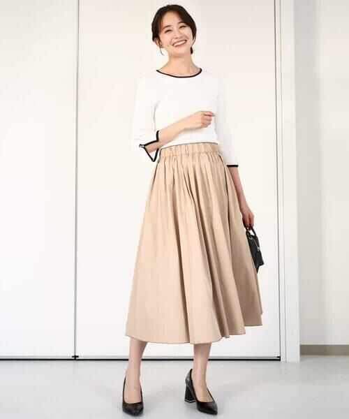 なめらかでやわらかな素材はきれい見え。お仕事などのONシーンにも使い勝手の良い素材感です。