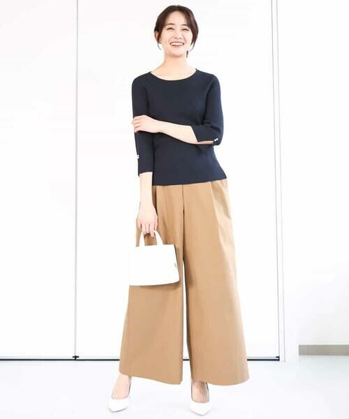 すっきりとしたシルエットがお仕事にも便利な、さらりと着られるリブニット。かたさの少ない柔らかな質感で、カーディガンやジャケットのインナーにもごわつかずに着られます。素材感は厚手すぎず、やや薄手のリブデザイン。サイズ感はすっきりコンパクトですが、伸縮性があるので窮屈感なく着られました。シンプルながらもスリット入りのお袖デザインがポイントになり、一枚でも映えるおすすめのアイテムです。